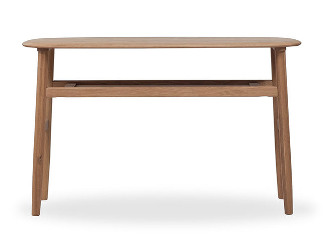 Danish design from IMG, the Adele range is genuinely Scandinavian Ñ American Oak timber and clever design across the whole range. Deceptively simple. Beautiful rounded edges, designed for good looks with maximum practicality. Adele Console is a perfect match for all of the Adele furniture items and features a handy shelf below the table top.