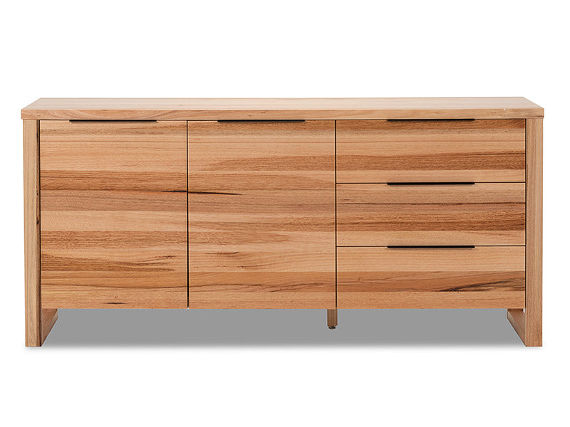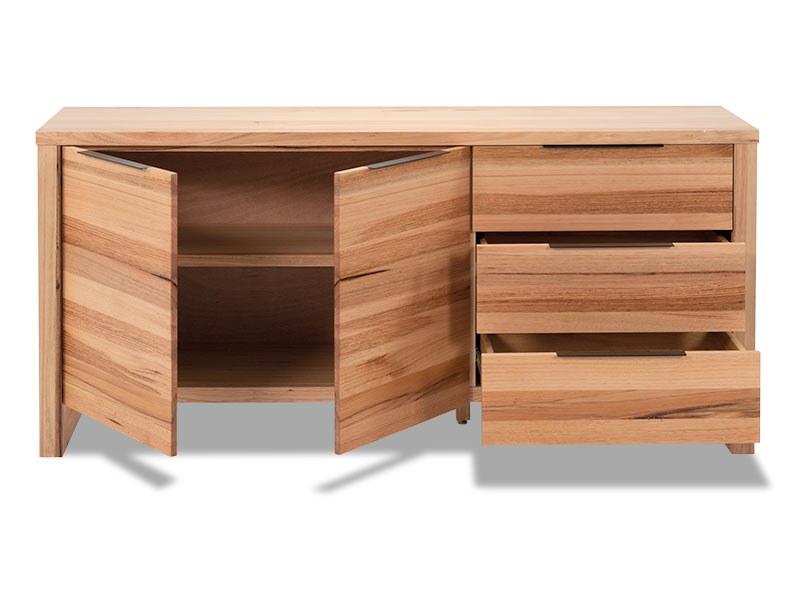 Beautiful Australian Eucalypt timber is a feature across the whole Nannup range of fine furniture. Each piece is individual with its own unique timber grain and distinctive texture pattern in the timber. Nannup Buffet is 1800 wide with 2 doors and 3 generous drawers. Simply beautiful and distinctive timber furniture.