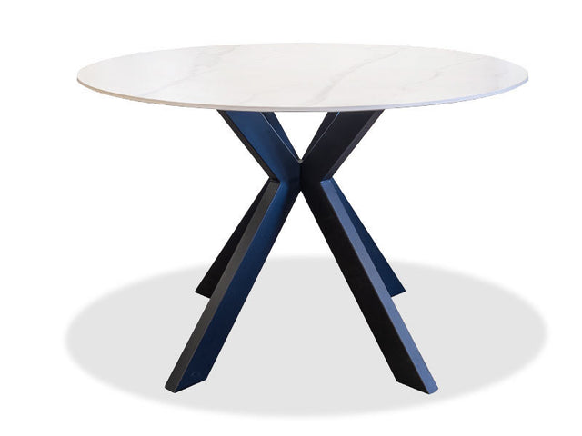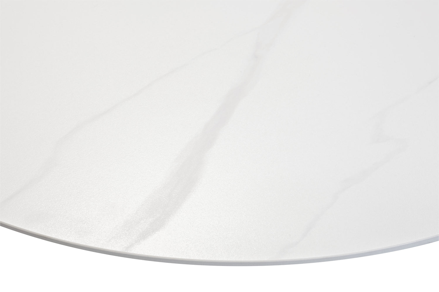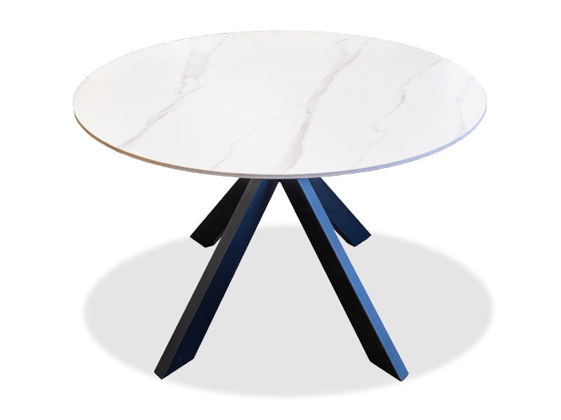 Tokyo round table has a distinctive ceramic top which is highly resistant to stains and scratches. Colour is Snow White. The frame and legs are powdercoated metal for strength. Different, practical, beautiful dining. Also available in Bulgarian Grey colour.