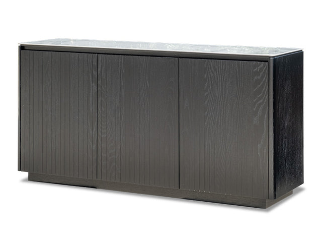 The Toranto Range features black stained White Ash timber and a sintered stone top which is resistant to stains and scratches. The 1600 buffet features 3 doors and internal adjustable shelves for maximum storage