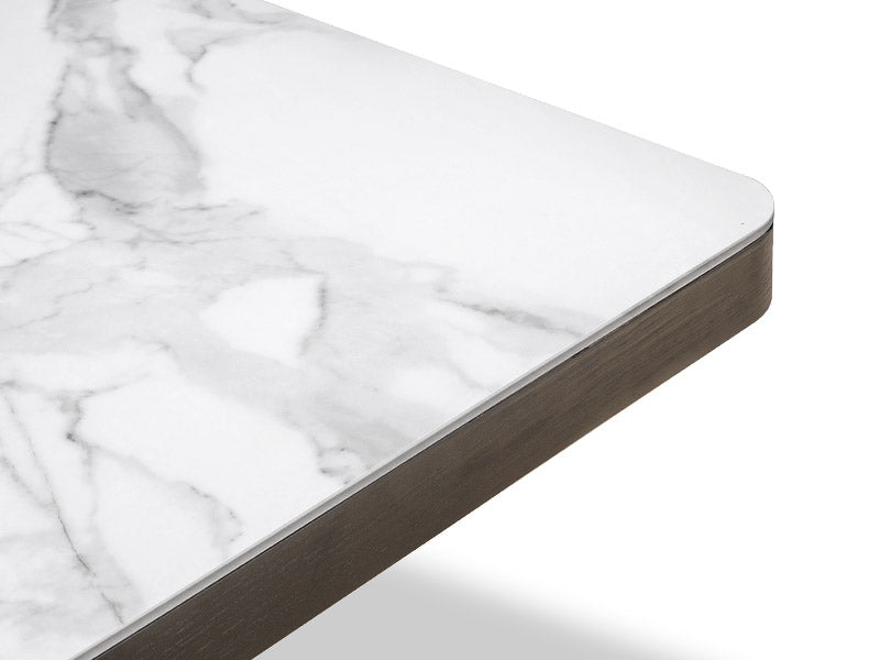 The Toranto Range features black stained White Ash timber and a sintered stone top which is resistant to stains and scratches. The Totanto 1800Êdining table features softly rounded corners, and pedestal legs in timber to harmonize with other pieces in the Toranto range.