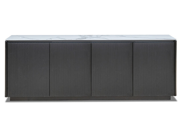The Toranto Range features black stained White Ash timber and a sintered stone top which is resistant to stains and scratches. The 2200 buffet features 4 doors and internal adjustable shelves for maximum storage