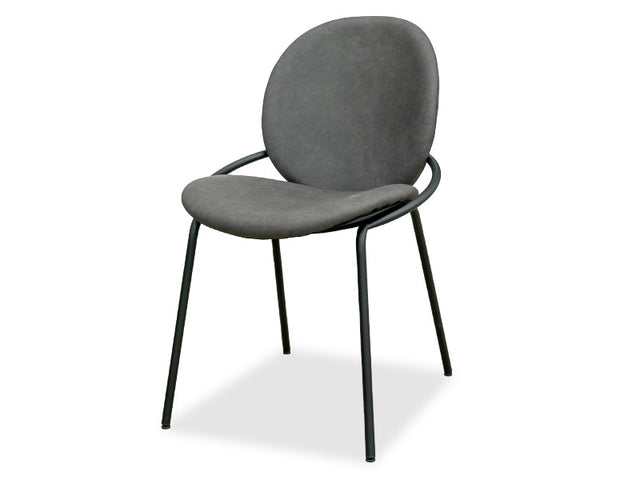 Vesta dining chairs in dark grey, easy-care PU material. Steel legs and a curved steel seat rim give Vesta a unique look. Perfect in your kitchen or dining area, Vesta is stylish and comfortable seating.