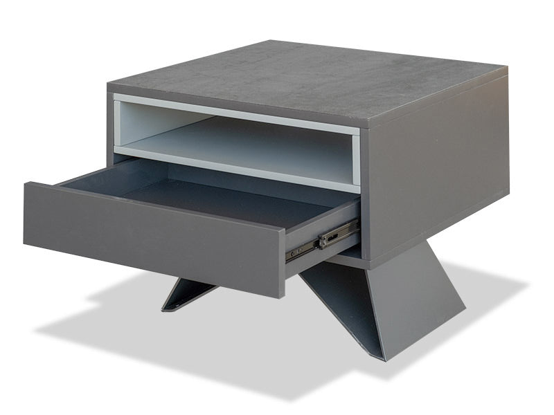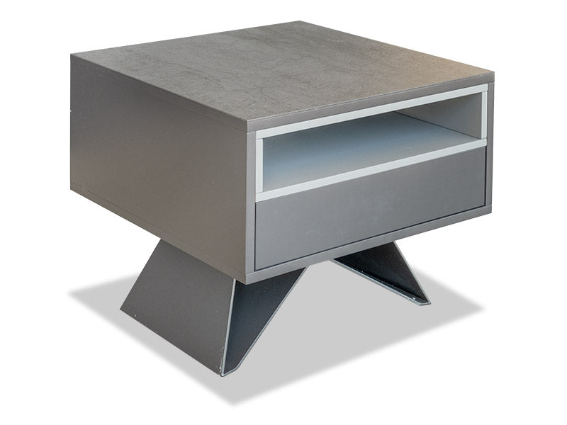 The Bondi range features an Italian ceramic top which is resistant to stains and scratches, and a strong, powder coated metal base. A distinctive new range of modern furniture. Bondi lamp table has a storage drawer and a modern pass-through shelf -perfect for magazine storage.