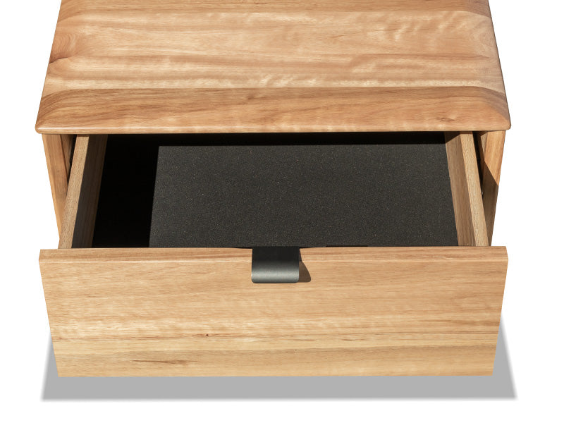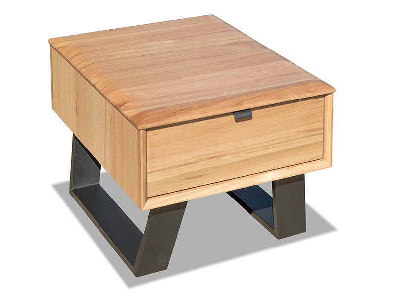 The Havana range is solid Messmate, a beautiful Australian Eucalypt. The whole Havana range features black metal legs. The Havana lamp table features a drawer on rails, for extra storage.